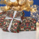 Vintage Christmas Greenery Botanical Plaid Pattern Wrapping Paper