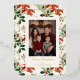 The seamless pattern adds a touch of vintage elegance to the card. It features an intricate green and red winter botanical pattern that is both timeless and unique, making your holiday card stand out from the rest.