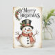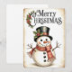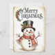 Send warm wishes wrapped in winter charm with this classic snowman greeting card. Featuring a cheerful snowman in a red plaid scarf and holly-topped top hat, this design blends nostalgic whimsy with timeless holiday spirit. The weathered background and festive “Merry Christmas” script add a touch of vintage elegance—perfect for heartfelt messages, seasonal gifting, or cosy holiday collections.