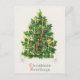 Vintage Christmas Greetings Tree Holiday Postcard. Beautiful vintage Christmas Tree postcard. This design features a holiday tree lit with candles and decorated with ornaments and garland. What a beautiful holiday scene.