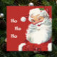 Ho, ho, ho, Merry Christmas! Vintage illustration Christmas holiday design featuring a jolly, happy Santa Claus winking as if he has a secret. He is wearing a hat with holly leaves.