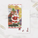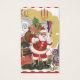 Vintage illustration Christmas holiday design from the classic children's story book "Twas the Night Before Christmas." This design features a jolly Santa Claus in a living room of a child's house after having climbed down the chimney with a sack full of toys on Christmas Eve. Stockings are hanging on the mantle by the fireplace.