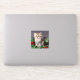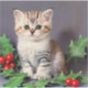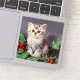 Sticker featuring a vintage Christmas kitten and holly! An adorable kitty with green eyes poses with boughs of holly. A merry gift for the Christmas season and cat lovers!