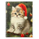 Notebook featuring a vintage Christmas kitten! This adorable kitty wears a Santa hat and sits in a Christmas tree decorated with ornaments. A wonderful gift for the Christmas season and cat lovers!