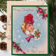 A pretty reproduction of a vintage Christmas card, it has been edited to clean the image up, and it has a reproduction of a vintage postcard on the back so that you can write a message. Send it in the mail or give it with a Christmas gift to add a touch of whimsy. It features a design of a pretty lady with bows and holly. Customise it with your name for personalisation.