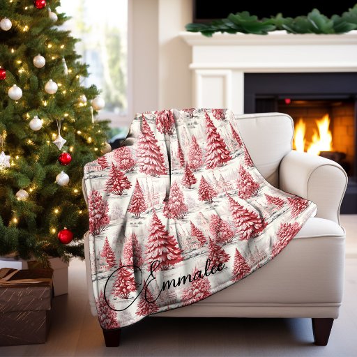 This chic & festive vintage Christmas personalised name cosy sherpa blanket blush pink and red is a perfect holiday season decor accessory that features gorgeous French toile de jouy style wintry evergreen trees pattern, with old world churches, and snow covered ground tucked into the winter wonderland landscape. We selected the comforting soft shades of pink, red, black, and grey with off-white background to create a chic, inviting, and vintage Christmas design for your home. This is the perfect custom Christmas or housewarming gift for someone special this holiday season! Option to replace wording with personalised family name, cute nickname, "Merry & Bright" or anything you like! Simply click the blue "edit using design tool" button in the Personalise screen, and make it your own or customise a gift for someone special! Custom design requests or template questions are always welcome - click the "message button", or email: contact@figandlilyco.com. Thank you!