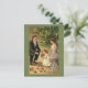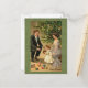 This beautiful custom vintage postcard features a mother and father playing with there little bundle of joy by the Christmas tree. The small child is holding a ball preparing to toss to her daddy, there are blocks scattered about on the floor. In the bottom right corner the words "A Merry Christmas" are displayed. This adorable vintage image is set against a beautiful green ornamental Christmas background to complete this lovely postcard.
