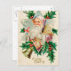 This custom vintage postcard features Santa artistically displayed inside of a beautiful star, with his bag of toys surrounded by holly and ivy. Towards the bottom of the card a golden bell is displayed and the words "A Merry Christmas" are displayed at the bottom of the postcard.
