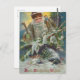 Capture the charm of a classic Christmas with this beautiful vintage postcard featuring Santa Claus holding a staff and carrying gifts. With a snowy evergreen branch and golden stars lighting up the night, this nostalgic illustration brings a warm and cozy feeling to your holiday greetings. Perfect for collectors and those who love the timeless magic of a traditional Christmas, this postcard is an ideal way to spread holiday cheer.