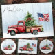 Spread joy and festive cheer this holiday season with our Vintage Red Truck Christmas Cards. Perfectly capturing the spirit of a rustic winter wonderland, these cards feature a charming red truck adorned with a Christmas tree in the back, set against a picturesque farmhouse backdrop. This delightful scene is complemented by patriotic touches, including an American flag waving proudly in the crisp winter air.