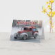 A classic red and silver vintage truck drives through a snowy winter landscape, loaded with brightly wrapped presents in the truck bed. The frosted trees in the background, paired with the festive "Merry Christmas" message in bold letters, create a nostalgic holiday scene that captures the warmth and joy of the Christmas season. This card brings a blend of old-fashioned charm and the excitement of gift-giving, perfect for spreading holiday cheer!