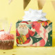 Background: The background is a deep green colour, which contrasts beautifully with the red, white, and pink elements in the foreground. The background is also sprinkled with small stars and sparkles, adding a magical and celebratory touch to the pattern.