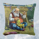 Vintage Christmas, Santa Claus Making Toy Dolls Cushion