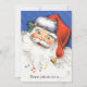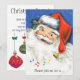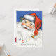 Vintage illustration Merry Christmas holiday image featuring a jolly Santa Claus with a big smile or grin. He is smiling, laughing and wearing a Santa hat with some holly and berries. His bright red hat has a bell on the end that is playing some music and musical notes are floating around. Season's Greetings and Merry Christmas!