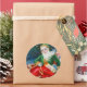 Vintage christmas santa claus party sticker. Vintage santa claus with gift.