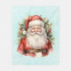 A blanket with a cute vintage style watercolor image. Santa Claus in his red suit with jolly cheeks and a smiling face. Surrounded by pine and holly.