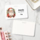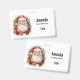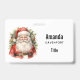 Name tag with a cute vintage style watercolor image. Santa Claus in his red suit with jolly cheeks and a smiling face. Surrounded by pine and holly.