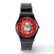 A watch with a cute vintage style watercolor image. Santa Claus in his red suit with jolly cheeks and a smiling face. Surrounded by pine and holly.