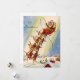 Vintage Christmas Santa Flying Reindeer Holiday Card.
