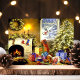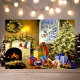 Beautiful vintage Christmas living room scene postcard. This design features a beautiful fireplace mantle decorated with lit garland, stockings, and candles. There is a snowman peeking through the window and a hoard of presents sitting beneath the decorated lit Christmas tree. What a beautiful holiday scene.