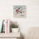 Vintage Christmas Snow Children Pig Square Wall Clock