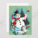 Vintage Christmas Snowman Sings To Animals Holiday Card.