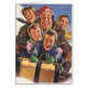 Vintage illustration Christmas image featuring a family sledding on Christmas Day.