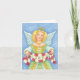 Vintage illustration Christmas image featuring an angel with a halo and wings holding a scarf with the word "joy."