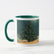 Vintage illustration Victorian Merry Christmas holiday design featuring a snowy landscape. A snowscape with a Christmas tree decorated with bright lights on a winter night with a starry night sky and snow on the ground. Happy Holidays and Season's Greetings!