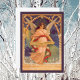 Vintage illustration religious Victorian Christmas holiday image featuring a floating angel reading the Bible. This angelic lady has beautiful wings, long dark hair, and a flowing robe; she is under a decorative arch while reading a book.