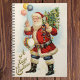 Vintage illustration Christmas holiday design featuring a Victorian Santa Claus carrying a Christmas tree, balloons and a toy drum. A Happy Christmas!