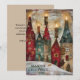 Cute vintage Christmas greeting card with the painting of a red and green village with candles . Text says, "Season's Greetings" but is customisable for your own greeting. Personalised on the back with your message and name. Contact me for assistance with your customisation or to request additional matching or coordinating Zazzle products.