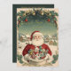 Celebrate the magic of Christmas with this vintage-inspired holiday card, featuring a classic Santa Claus illustration holding a festive array of toys, set against a nostalgic winter village backdrop. This timeless design captures the warmth and joy of the holiday season, making it a perfect choice for sending heartfelt wishes to family and friends. Customise with your personal message inside for a truly special touch. Ideal for those who appreciate retro charm and holiday nostalgia.
