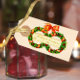 Vintage Christmas Gifting Labels with green wreaths and a red ribbon. Stickers pack, variant 3