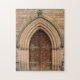 Challenge your puzzle making skills with this shot of vintage wooden doors in a stone archway and the classic architecture of a church in the United Kingdom.