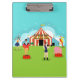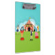 Step right up, folks! Step right up to the amazing Vintage Circus Clipboard. Yes, come one, come all! This mid century modern, minimalist art design features a cartoon drawing of a genuine, three-ring circus. Take it all in. On the lush, green grass, you can see a ringmaster wearing a red coat with tails, orange pants, and a black top hat. In one hand he is holding a green megaphone, which allows him to be heard while telling you to step right up! Behind the ringmaster, there is a beautiful woman juggling five balls. Judging from the stars on her navy skirt and orange top, she is a star of the show. To the left of the man with the megaphone, we see a brawny, muscleman. It takes confidence to pull off a navy, one-shouldered, unitard, but Mr. Strong Man does it with style. My goodness! Check out those bulging biceps as his lifts that dumbbell as if it's as light as a feather. His black, handlebar moustache looks as manly as the rest of him. To the left of the body builder, there is a pink, baby elephant standing on a red podium. Don't worry. The juvenile pachyderm appears to be as tame as a kitten. Towards the rear of the scene, we can see a mad-capped man making a real clown of himself. He didn't buy that red and yellow, harlequin style suit off the rack! His blue hat, orange and yellow hair, white face paint, and red nose would make him unrecognisable to his own mother. And this is only the excitement we can see! Who knows what lively antics are playing out in the three big tops that grace the background! Two blue and aqua tents are flanking a giant red and cream striped big top tent with yellow and black letters that spell out, "CIRCUS." A yellow, banner flag is waving from the top of each tent. The sky is shades of aqua, teal, blue and white and is filled with magical, white stars. The opposite side of this clipboard features wide, red and cream stripes. Just like the circus itself, this design is fun for the whole family and is perfect for children of all ages!