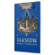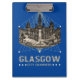 A vintage clipboard, its transparent acrylic surface showcasing the city's majestic City Chambers, whispering tales of centuries past, a tangible link to history waiting to be explored.