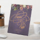 Luxury elegant dark purple plum classic faux gold copper metallic calligraphy script bridal shower welcome cards & gifts tabletop pedestal sign featuring a garland of vintage pink, plum indigo and ivory cream flowers. +++++++++++++ Suitable for vintage romantic, moody elegant formal black tie summer night, autumn fall or winter bridal parties.
