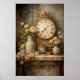Vintage Clock and Roses Poster