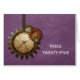 This unique Vintage Clock Table Number Card in purple features antique steampunk clocks and gears hanging by a metal bead chain. The background has a textured paper and mesh overlay which adds a distressed and grungy feel to the design. This quirky and offbeat wedding table number card would be perfect for a steampunk inspired wedding. Easy to customise, simply add the appropriate table number(s) in the space provided. Click on the "Customise It" button to find additional personalisation options.