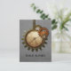 This unique Vintage Clock Table Number Postcard in light grey features antique steampunk clocks and gears hanging by a metal bead chain. The background has a textured paper and mesh overlay which adds a distressed and grungy feel to the design. This quirky and offbeat wedding table number postcard would be perfect for a steampunk inspired wedding. Easy to customise, simply add the appropriate table number(s) in the space provided. Click on the "Customise It" button to find additional personalisation options.