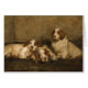 Vintage artwork by John Emms features a trio of Clumber Spaniels, two of which are cuddled up and sleeping while the third sits upright and keeps an eye on things. The English artist, John Emms (1844-1912) was an avid hunter and became famous for his paintings of sporting scenes, horses and dogs, particularly Foxhounds and Terriers. He married a woman from Lyndhurst in 1880, and after a brief residence in London, they returned to Lyndhurst where they established a home and studio called The Firs. Emms lived there for the remainder of his life. He was famous not only for his artwork, but also for his big personality, flamboyant style of dressing, and often careless spending of money. This card is blank inside for your own message.