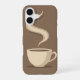 Retro illustration of a stylized coffee cup featuring soft curves representing the steam.