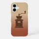 Retro illustration of a manual coffee grinder, stylized in a soothing earthy palette.