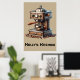 Vintage coffee machine with a fancy top and coffee beans scattered around the bottom. There is a message at the bottom that should be changed or deleted (currently says "Kelly's Kitchen"). This exclusive design can only be found in this store. The image shown is 24 x 36", unframed, with high quality paper, but there are many design options from which to choose. They include paper quality, poster size, various framing options and prices. You can also download the image instead for a much lower price.