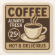 Serve up vintage style with every drink using this square pulp board coaster featuring a retro coffee shop design that reads “COFFEE – Always Fresh – 25¢ – Hot & Delicious.” With its nostalgic diner vibe and bold brown tones, it’s a fun and functional addition to any gathering.