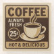 Add a splash of retro charm to your kitchen or coffee bar with this vintage-style glass coaster. Featuring a bold “COFFEE – Always Fresh – 25¢ – Hot & Delicious” design in warm brown tones, it brings nostalgic diner vibes to every sip.