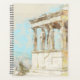 Vintage colour sketch postcard with caryatids against dramatic sky in Athens, Greece Planner