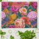 A bold and elegant pattern featuring vibrant, colourful peonies set against a pink background. This kitchen towel evokes a vintage and rustic aesthetic, with detailed floral illustrations that pop with timeless charm. The moody backdrop enhances the romantic, antique feel—perfect for seasonal style, floral lovers, or vintage-inspired themes.