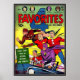 A Golden Age comics series that ran for 32 issues from September, 1941 through December, 1947. It was published by Ace Publications. Upon cancellation the magazine continued as Crime Must Pay the Penalty for one issue #33, then as Four Teeners for issue 34. Though the series started as a super-hero comic it abandoned that genre after issue 26. “Ace's output of a few dozen issues of costume hero interest bursts with generic patriotic energy —- nothing really creative, but still typical of the period and generally written and drawn a cut above better known companies of the era. It took collectors a long time to discover the Ace heroes because most of them were gone well before the end of World War II. Ace became much better known for its pulps (1930s and 40s) and paperbacks (beginning with the classic Ace Double Novels in 1952). Yet the company was a significant second-tier comic book outfit from 1940-56, especially in the romance field from 1949-56.”CGC “Four Favourites was numbered consecutively for 32 issues. Although the covers are generally not as cool as Lightning, this is your best bet if you want to get all the major Ace heroes in one book. Magno ran through #26; Lash Lightning through #22 (with Lightning Girl in #19-22); The Unknown Soldier in #4-20; The Raven through #4; Vulcan through #3; Captain Courageous in costume in #5-21 except #6; and The Flag in #6. The best issues are the first 18, since you get four full-length super hero stories in every issue of 10 to 16 pages. These 18 issues of Four Favourites are prime Golden Age examples of patriotic heroes.” CGC These comics are in the public domain, and various publishers and creators have used them since.